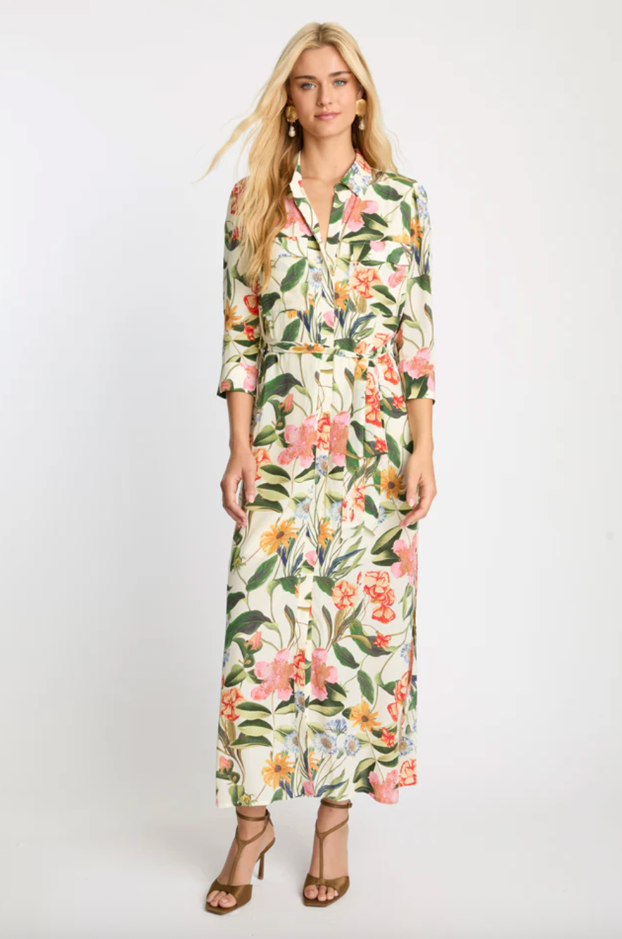 The Azura Dress in Buttercream Floral is an effortlessly elegant full-length silhouette designed to make a statement. Featuring our romantic Buttercream Floral print, the dress showcases expressive blooms in shades of pink, orange, blue, and lush green layered over a soft, creamy backdrop for a look that feels both timeless and fresh.