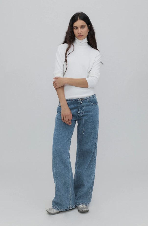 The Cool Jean in Classic Blue is made of our Cloud fabric, the softest denim in the world. Made from 100% cotton and using advanced weaving technology to achieve a super airy and drapey feel. Designed for all-day comfort from breakfast to bed.