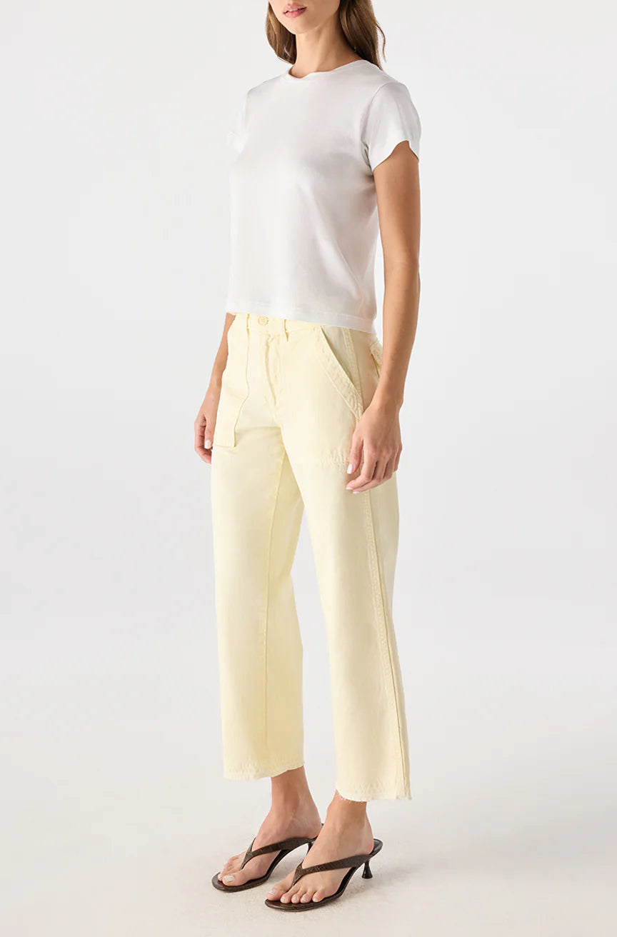 A more oversized take on AMO's Easy Army Trouser with a wider leg, cropped inseam, and adjustable waist tabs for a cinched or boyish fit.