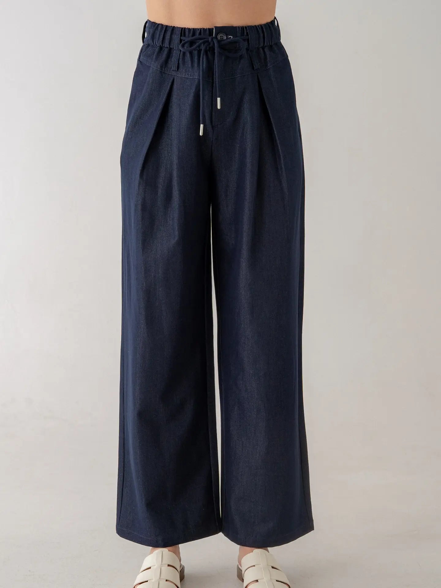 Wide-leg pants crafted from a soft poly-rayon blend denim fabric