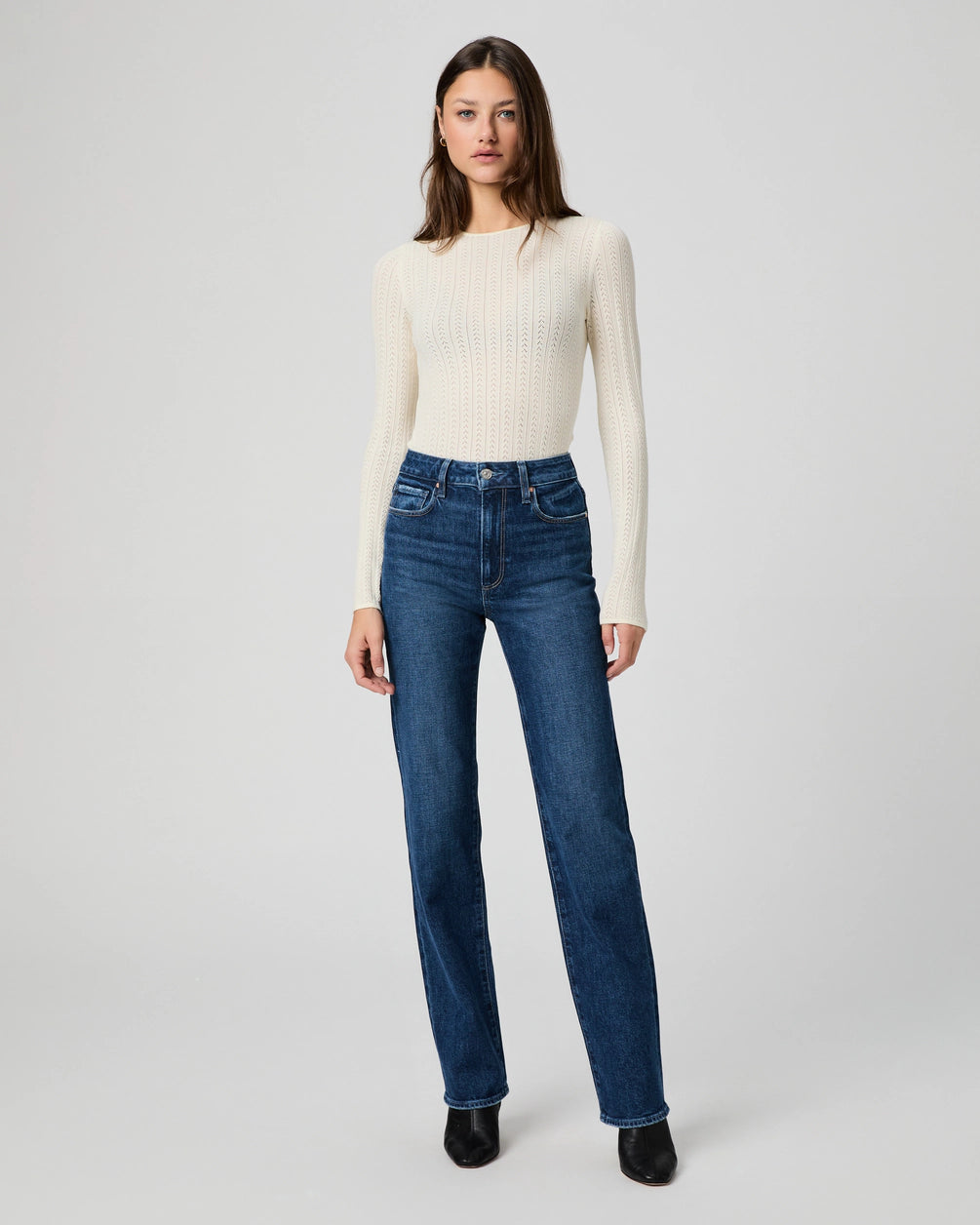Stevie is Paige's high-rise straight leg silhouette. In a clean and classic dark wash, this pair is crafted from heritage-inspired denim with a soft hand-feel and a hint of stretch.