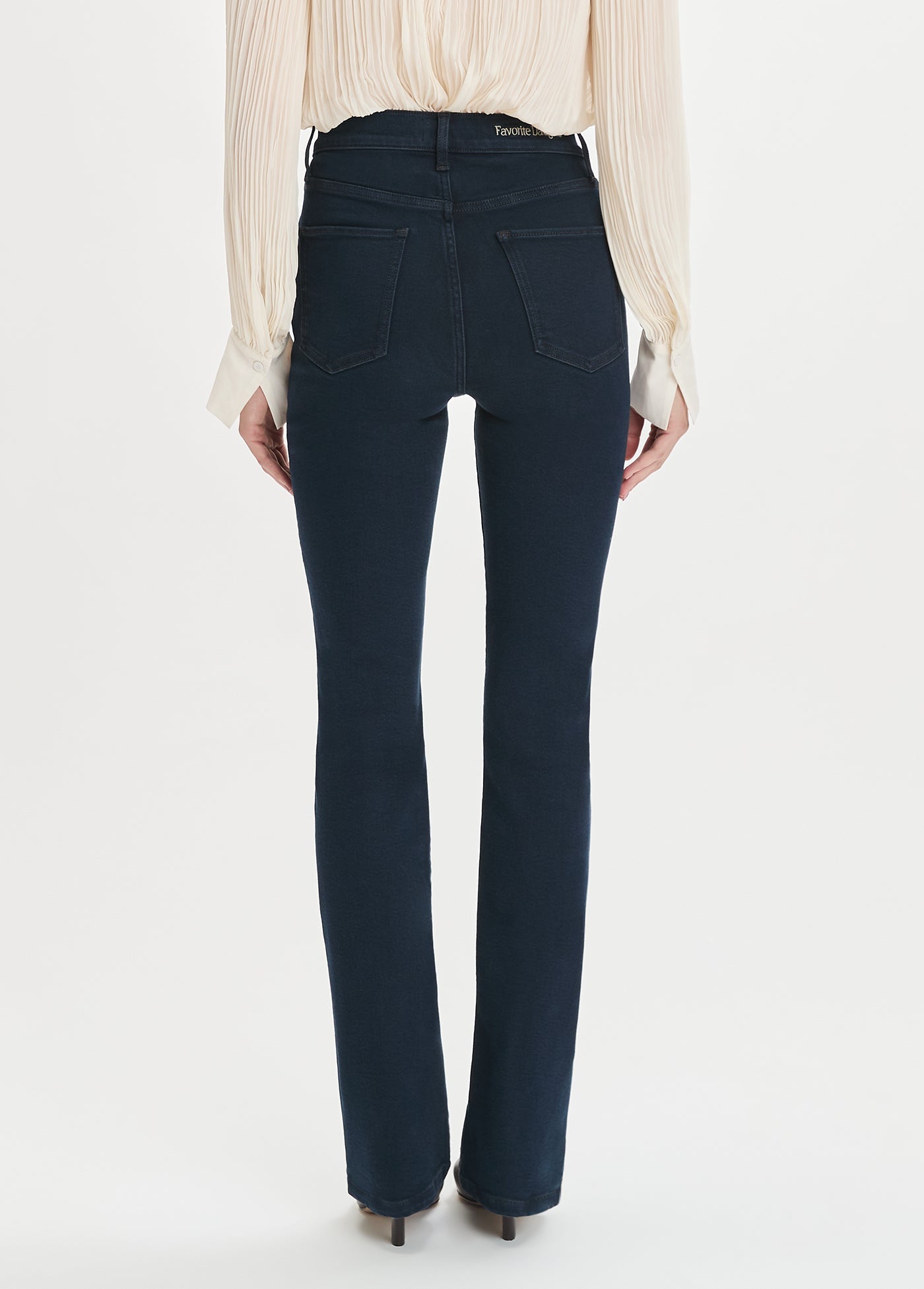 The Valentina Mini Boot features an 11.5" rise and a 34" inseam for a leg-lengthening, vintage-inspired fit. Done in Beverly, an overdyed blue-black wash cut from super stretch denim that hugs in all the right places. The dark inky hue is our favorite for dressed-up denim days.